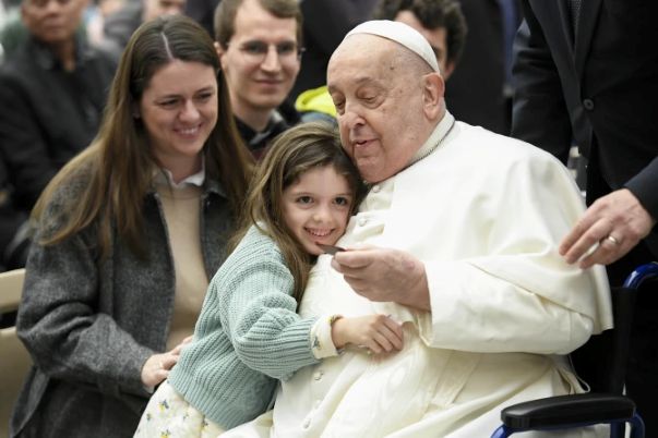 Đức Giáo Hoàng Phanxicô trong buổi tiếp kiến chung vào thứ Tư tại Hội trường Paul VI tại Vatican vào thứ Tư, ngày 12 tháng 2 năm 2025. (Nguồn: Alessandra Tarantino/AP.)