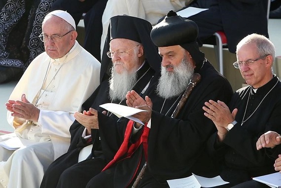Mọi người đứng tham dự phần kết thúc nghi thức do Đức Giáo Hoàng Phanxicô chủ sự. Đức Giáo Hoàng Phanxicô, cùng với các vị đứng đầu Giáo hội và các nhà lãnh đạo Kitô giáo: